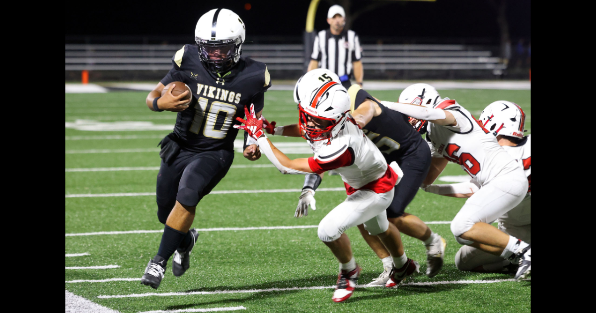 The Huskies led at the halftime break 13-7. The Huskies in the first half would get a Jayden Smith 2-yard TD run and a 12-yard TD run from Wyatt Pollett. Aurora tried a 2-point conversion on their 2nd score of the night but came up short on a Cannon Allen run. The Vikings got a 1-yard TD run from Caejon Suttles in the first half.