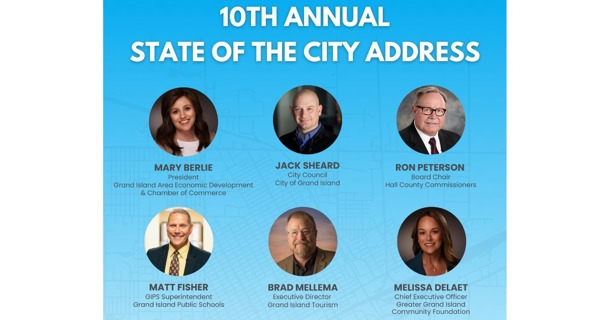 (Grand Island, NE) – The Grand Island’s Young Professionals program is hosting the 10th annual State of the City Address Thur., Jan. 22, 2026, from 8:30 to 10 a.m. at Venues on South Locust (1607 S Locust Street, Suite A, Grand Island, NE 68801).